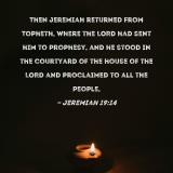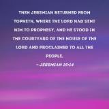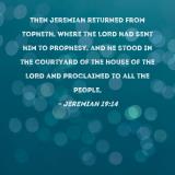 Then Jeremiah returned from Topheth, where the LORD had sent him to prophesy, and he stood in the courtyard of the house of the LORD and proclaimed to all the people,