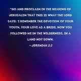 "Go and proclaim in the hearing of Jerusalem that this is what the LORD says: 'I remember the devotion of your youth, your love as a bride, how you followed Me in the wilderness, in a land not sown.