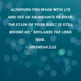 Although you wash with lye and use an abundance of soap, the stain of your guilt is still before Me," declares the Lord GOD.