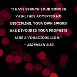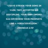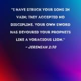 "I have struck your sons in vain; they accepted no discipline. Your own sword has devoured your prophets like a voracious lion."