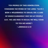 You people of this generation, consider the word of the LORD: "Have I been a wilderness to Israel or a land of dense darkness? Why do My people say, 'We are free to roam; we will come to You no more'?