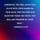 Moreover, you will leave that place with your hands on your head, for the LORD has rejected those you trust; you will not prosper by their help."