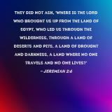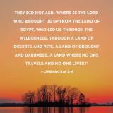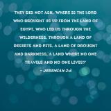 They did not ask, 'Where is the LORD who brought us up from the land of Egypt, who led us through the wilderness, through a land of deserts and pits, a land of drought and darkness, a land where no one travels and no one lives?'