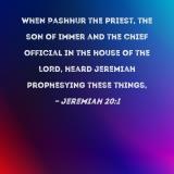 When Pashhur the priest, the son of Immer and the chief official in the house of the LORD, heard Jeremiah prophesying these things,