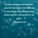he had Jeremiah the prophet beaten and put in the stocks at the Upper Gate of Benjamin, which was by the house of the LORD.