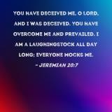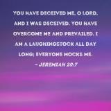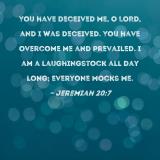 You have deceived me, O LORD, and I was deceived. You have overcome me and prevailed. I am a laughingstock all day long; everyone mocks me.