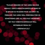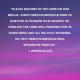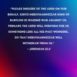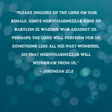 "Please inquire of the LORD on our behalf, since Nebuchadnezzar king of Babylon is waging war against us. Perhaps the LORD will perform for us something like all His past wonders, so that Nebuchadnezzar will withdraw from us."