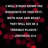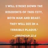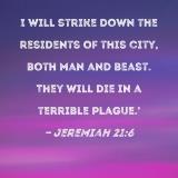 I will strike down the residents of this city, both man and beast. They will die in a terrible plague.'
