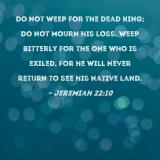 Do not weep for the dead king; do not mourn his loss. Weep bitterly for the one who is exiled, for he will never return to see his native land.