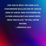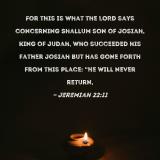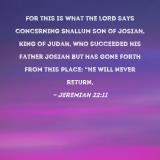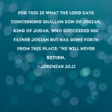 For this is what the LORD says concerning Shallum son of Josiah, king of Judah, who succeeded his father Josiah but has gone forth from this place: "He will never return,