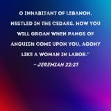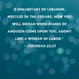 O inhabitant of Lebanon, nestled in the cedars, how you will groan when pangs of anguish come upon you, agony like a woman in labor."