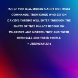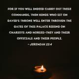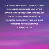 For if you will indeed carry out these commands, then kings who sit on David's throne will enter through the gates of this palace riding on chariots and horses--they and their officials and their people.