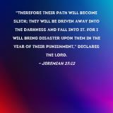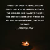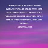 "Therefore their path will become slick; they will be driven away into the darkness and fall into it. For I will bring disaster upon them in the year of their punishment," declares the LORD.