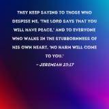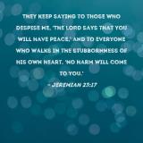 They keep saying to those who despise Me, 'The LORD says that you will have peace,' and to everyone who walks in the stubbornness of his own heart, 'No harm will come to you.'