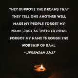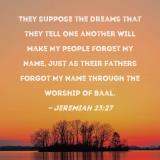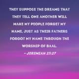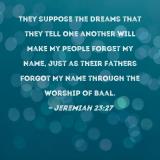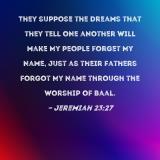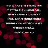 They suppose the dreams that they tell one another will make My people forget My name, just as their fathers forgot My name through the worship of Baal.