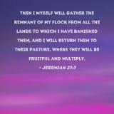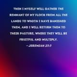 Then I Myself will gather the remnant of My flock from all the lands to which I have banished them, and I will return them to their pasture, where they will be fruitful and multiply.