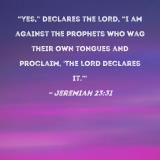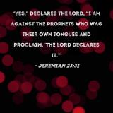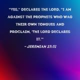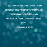 "Yes," declares the LORD, "I am against the prophets who wag their own tongues and proclaim, 'The LORD declares it.'"