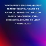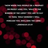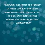 "Now when this people or a prophet or priest asks you, 'What is the burden of the LORD?' you are to say to them, 'What burden? I will forsake you, declares the LORD.'