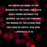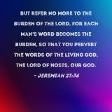 But refer no more to the burden of the LORD, for each man's word becomes the burden, so that you pervert the words of the living God, the LORD of Hosts, our God.