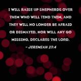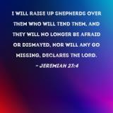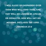 I will raise up shepherds over them who will tend them, and they will no longer be afraid or dismayed, nor will any go missing, declares the LORD.