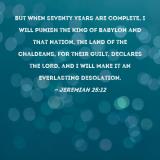But when seventy years are complete, I will punish the king of Babylon and that nation, the land of the Chaldeans, for their guilt, declares the LORD, and I will make it an everlasting desolation.