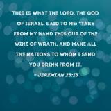 This is what the LORD, the God of Israel, said to me: "Take from My hand this cup of the wine of wrath, and make all the nations to whom I send you drink from it.