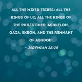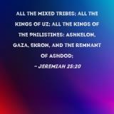 all the mixed tribes; all the kings of Uz; all the kings of the Philistines: Ashkelon, Gaza, Ekron, and the remnant of Ashdod;
