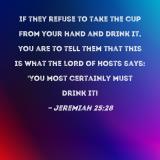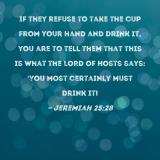If they refuse to take the cup from your hand and drink it, you are to tell them that this is what the LORD of Hosts says: 'You most certainly must drink it!