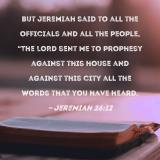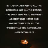 But Jeremiah said to all the officials and all the people, "The LORD sent me to prophesy against this house and against this city all the words that you have heard.