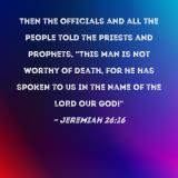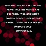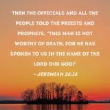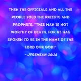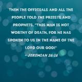 Then the officials and all the people told the priests and prophets, "This man is not worthy of death, for he has spoken to us in the name of the LORD our God!"