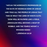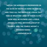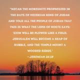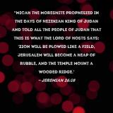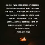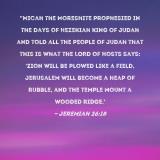 Pictures and Artwork "Micah the Moreshite prophesied in the days of Hezekiah king of Judah and told all the people of Judah that this is what the LORD of Hosts says: 'Zion will be plowed like a field, Jerusalem will become a heap of rubble, and the temple mount a wooded ridge.' |