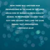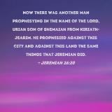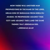 Now there was another man prophesying in the name of the LORD, Uriah son of Shemaiah from Kiriath-jearim. He prophesied against this city and against this land the same things that Jeremiah did.