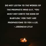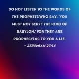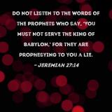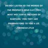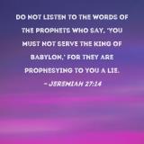 Do not listen to the words of the prophets who say, 'You must not serve the king of Babylon,' for they are prophesying to you a lie.
