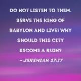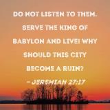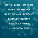 Do not listen to them. Serve the king of Babylon and live! Why should this city become a ruin?
