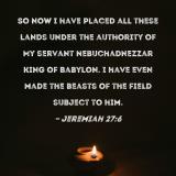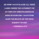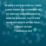 So now I have placed all these lands under the authority of My servant Nebuchadnezzar king of Babylon. I have even made the beasts of the field subject to him.