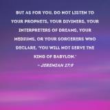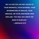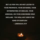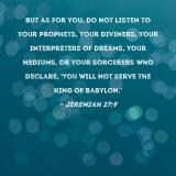 But as for you, do not listen to your prophets, your diviners, your interpreters of dreams, your mediums, or your sorcerers who declare, 'You will not serve the king of Babylon.'