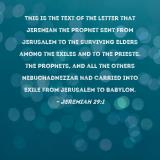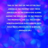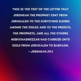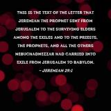Pictures and Artwork This is the text of the letter that Jeremiah the prophet sent from Jerusalem to the surviving elders among the exiles and to the priests, the prophets, and all the others Nebuchadnezzar had carried into exile from Jerusalem to Babylon. |