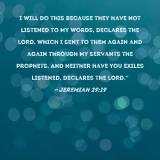 I will do this because they have not listened to My words, declares the LORD, which I sent to them again and again through My servants the prophets. And neither have you exiles listened, declares the LORD."