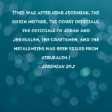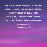(This was after King Jeconiah, the queen mother, the court officials, the officials of Judah and Jerusalem, the craftsmen, and the metalsmiths had been exiled from Jerusalem.)