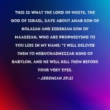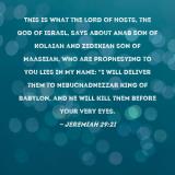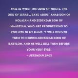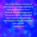 Pictures and Artwork This is what the LORD of Hosts, the God of Israel, says about Ahab son of Kolaiah and Zedekiah son of Maaseiah, who are prophesying to you lies in My name: "I will deliver them to Nebuchadnezzar king of Babylon, and he will kill them before your very eyes. |