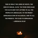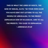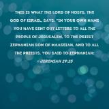 this is what the LORD of Hosts, the God of Israel, says: "In your own name you have sent out letters to all the people of Jerusalem, to the priest Zephaniah son of Maaseiah, and to all the priests. You said to Zephaniah: