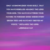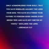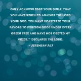 Only acknowledge your guilt, that you have rebelled against the LORD your God. You have scattered your favors to foreign gods under every green tree and have not obeyed My voice,'" declares the LORD.