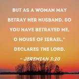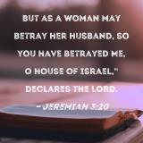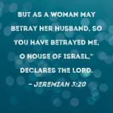 But as a woman may betray her husband, so you have betrayed Me, O house of Israel," declares the LORD.