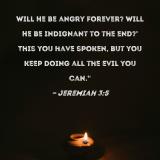 Will He be angry forever? Will He be indignant to the end?' This you have spoken, but you keep doing all the evil you can."