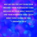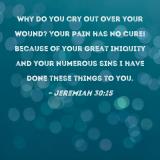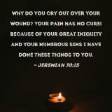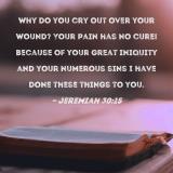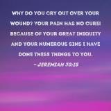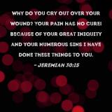 Why do you cry out over your wound? Your pain has no cure! Because of your great iniquity and your numerous sins I have done these things to you.