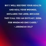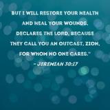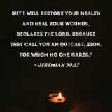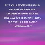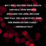 But I will restore your health and heal your wounds, declares the LORD, because they call you an outcast, Zion, for whom no one cares."