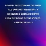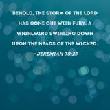 Behold, the storm of the LORD has gone out with fury, a whirlwind swirling down upon the heads of the wicked.