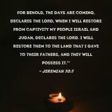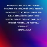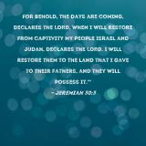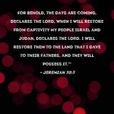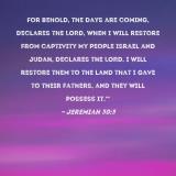 For behold, the days are coming, declares the LORD, when I will restore from captivity My people Israel and Judah, declares the LORD. I will restore them to the land that I gave to their fathers, and they will possess it.'"