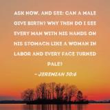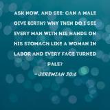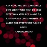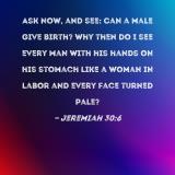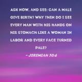 Ask now, and see: Can a male give birth? Why then do I see every man with his hands on his stomach like a woman in labor and every face turned pale?