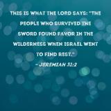 This is what the LORD says: "The people who survived the sword found favor in the wilderness when Israel went to find rest."